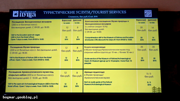 Geoblog.pl    bogmar    Zdjęcia    BIAŁORUŚ 2025    Cennik do Parku Narodowego Puszcza Białowieska